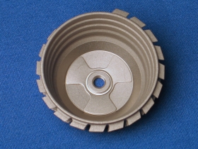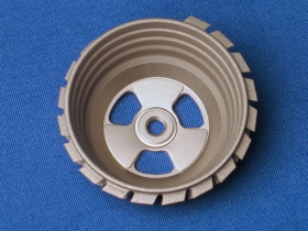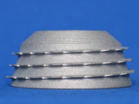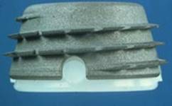 1992 erfolgte die Weiterentwicklung dieser Pfanne mit der Firma PLUS Orthopedics. Diese, nun doppelkonisch geformte (biconische) Pfanne besteht ebenfalls aus Reintitan (Abb. 14) und wird in die präparierte knöcherne Gelenkspfanne eingeschraubt. Es resultiert eine stabile Implantation unter Vorspannung. Von der Bicon-Pfanne sind 9 verschiedene Größen verfügbar. Unter diesen wählt der Operateur wiederum die geeignetste für den jeweiligen Patienten während der Operation aus. Es gibt weiters eine Pfanne vom "Standardtyp" für den normalen, harten Knochen (Abb. 14a), sowie eine Pfanne vom "Porosetyp" für den weichen, porotischen Knochen (Abb. 14b). Etwa 500.000 dieser Bicon Pfannen wurden bisher implantiert. Zusammen mit 14 Schaftgrößen sowie 3 Standardhalslängen stellt dieses System somit ein Baukastensystem dar, mit dem eine große Zahl von Kombinationsmöglichkeiten gegeben ist.